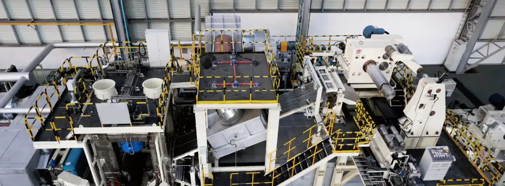 The mill adopts Primetals Technology's program and transmission control with high-level of automation. The products would have good performance in plate shape, dimensional accuracy, composite strength, rolling force and composite speed. The speed of our mill could reach as high as 10-15 meters/min (The industry's average speed is 4.5 meters'min). The mill adopting natural gas preheating and low nitrogen burner combustion. It also has exhaust gas recycling, closed cycle heating, thermostat control and stable annealing process.